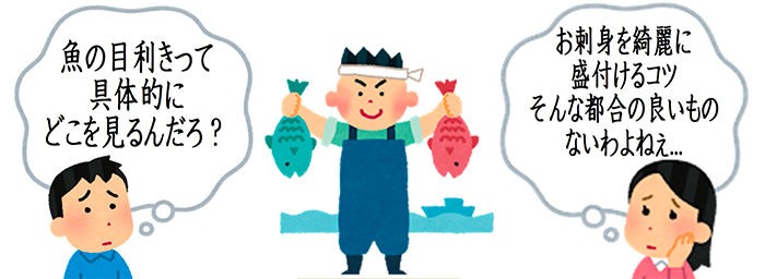 「鮮度の良い魚は具体的にどこを見て判断するの?」「お刺身をキレイに盛り付けるコツは何?」